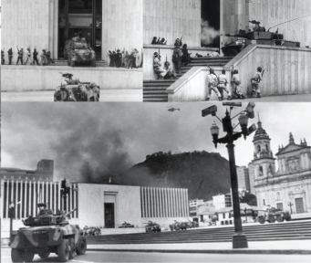 El Ejército Nacional respondió con una operación militar para retomar el control del Palacio, lo que derivó en un intenso enfrentamiento que dejó más de 100 muertos, entre ellos 11 magistrados de la Corte Suprema de Justicia, trabajadores judiciales, civiles y militares. Además, varias personas fueron dadas por desaparecidas, y su paradero sigue siendo incierto hasta el día de hoy.