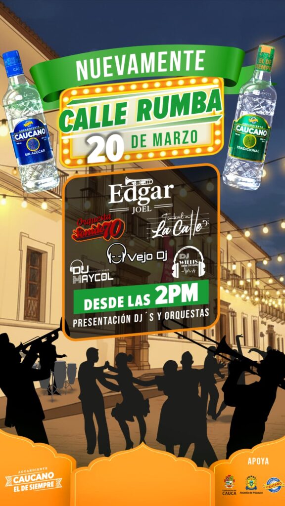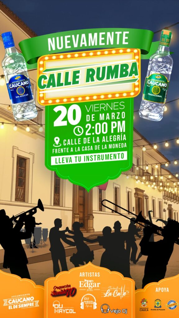 La segunda edición de Calle Rumba llega a Popayán con una propuesta renovada que promete consolidarse como uno de los eventos más importantes de entretenimiento en la ciudad. De la mano de Aguardiente Caucano, la rumba vuelve a tomarse las calles con música en vivo, DJs y una experiencia llena de cultura y sabor local.