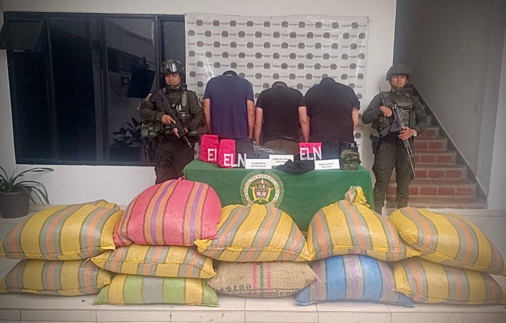 Uno de los aspectos que más llamó la atención de las autoridades fue el hallazgo de brazaletes alusivos al grupo armado organizado ELN. De acuerdo con las primeras indagaciones, estos elementos serían utilizados para intimidar a conductores de transporte de carga, haciéndose pasar por integrantes de este grupo ilegal.