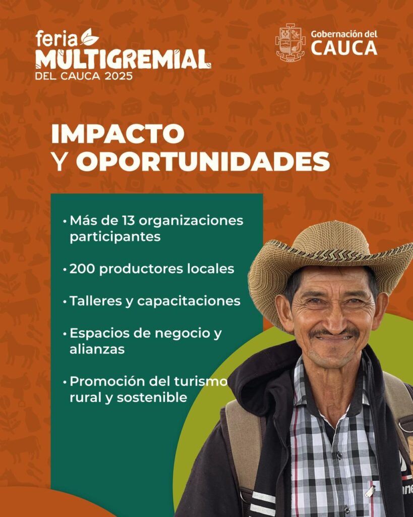 La Feria Multigremial del Cauca 2025 generará más de 2.000 empleos directos e indirectos, impulsará sectores como hotelería, gastronomía, transporte y comercio, fortalecerá la competitividad de las cadenas productivas del departamento y promoverá el turismo rural, cultural y gastronómico. Con esta apuesta estratégica, el Gobierno del Cauca reafirma su compromiso con la productividad, la innovación y la reactivación económica, consolidando este evento como una vitrina de progreso, tradición y desarrollo para toda la región.