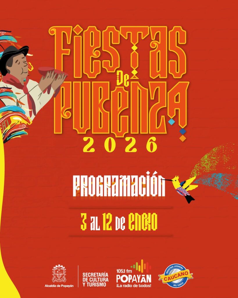 Popayán ya tiene lista la programación oficial de las Fiestas de Pubenza 2026, una de las celebraciones culturales más importantes del suroccidente colombiano, que se realizará del 3 al 12 de enero, con actividades para todos los públicos y escenarios emblemáticos de la ciudad.
