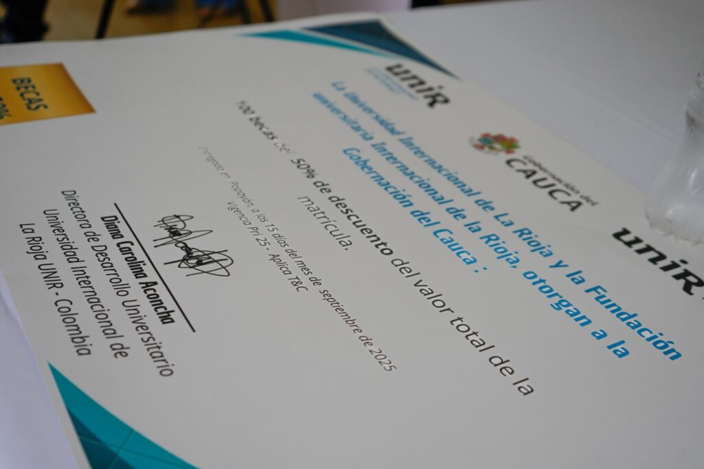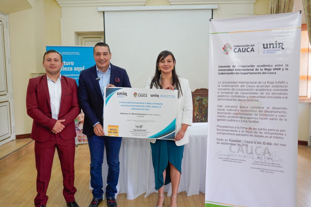 La Gobernación del Cauca anunció la entrega de 100 becas para estudios de pregrado, especialización y maestría, gracias a un convenio firmado con la Universidad Internacional de La Rioja (UNIR), reconocida como la universidad digital número uno en el mundo.