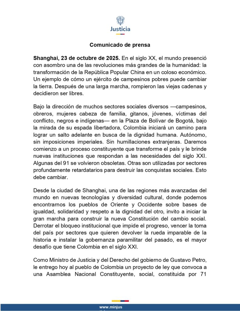 El presidente Gustavo Petro ha vuelto a plantear la idea de convocar una Asamblea Nacional Constituyente con el fin de reformar el marco constitucional vigente. Según sus propias declaraciones, esta iniciativa busca desbloquear las reformas sociales y estructurales que, a su juicio, han quedado frustradas por el sistema político actual.