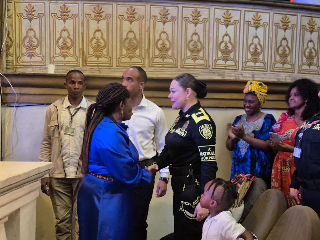 Durante su intervención, la oficial compartió experiencias y estrategias impulsadas por la Policía Nacional de Colombia para promover entornos seguros y equitativos para las mujeres, resaltando la importancia del liderazgo femenino y la participación activa en los procesos de transformación social.
