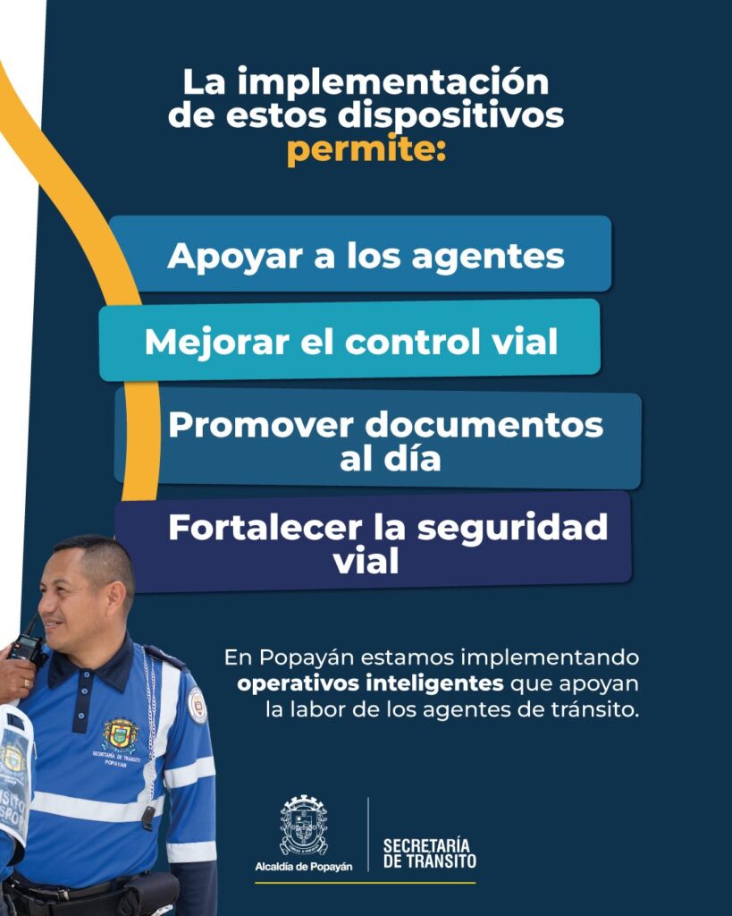 Con esta estrategia, Popayán avanza en la modernización del control de tránsito, incorporando tecnología para optimizar la vigilancia y reforzar el compromiso institucional con la seguridad vial.
